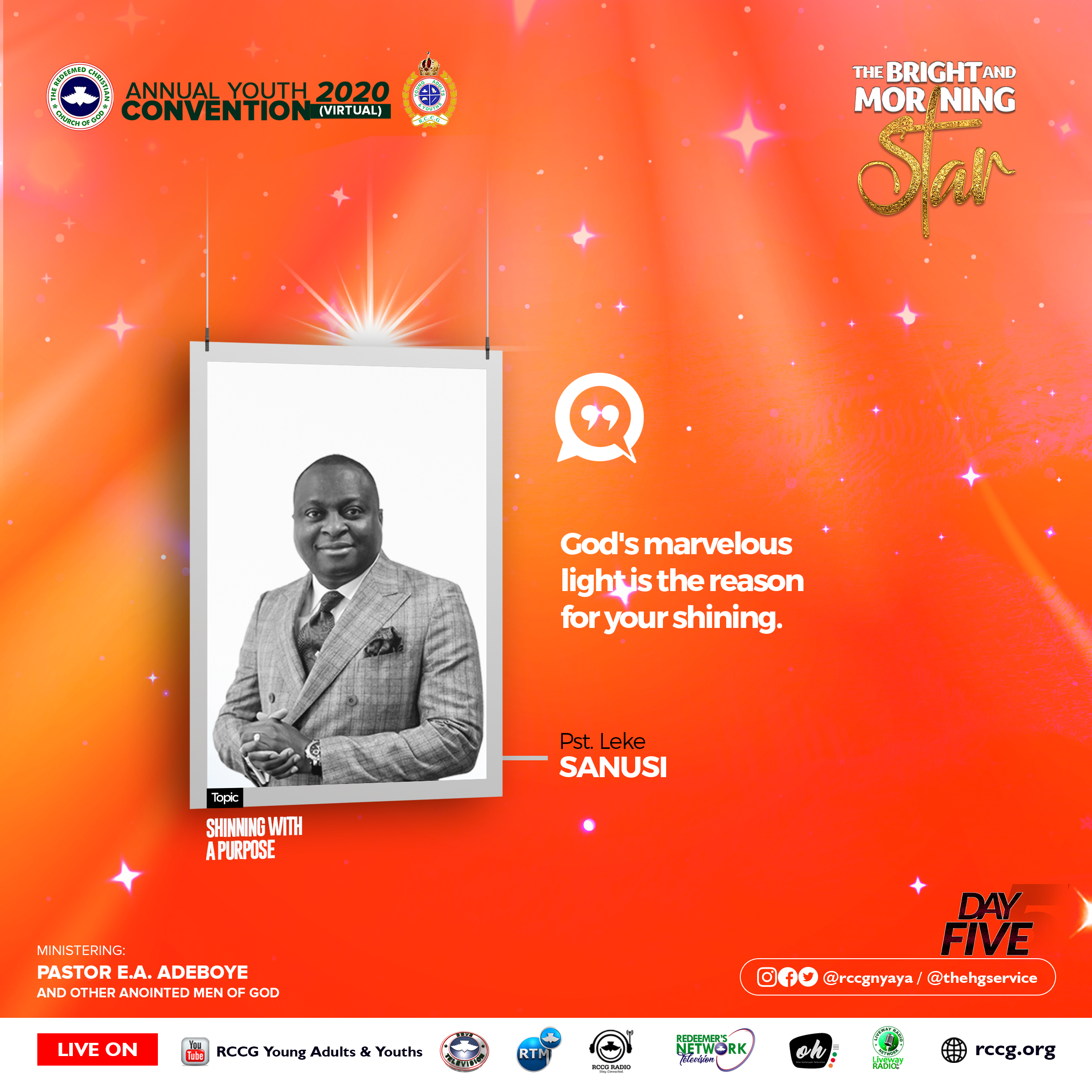 Shining With The Stars: RCCG Annual Young Adults and Youth Affairs Convention “THE BRIGHT AND MORNING STAR” by Leke Sanusi, Day 5 , Holy Ghost Service, October 2nd 2020.