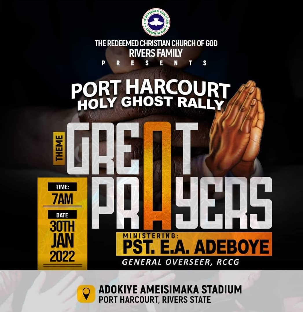 Discovery Media Crew brings to you the audio format of message by Pastor E.A. Adeboye, during Port Harcourt Holy Ghost Rally on Sunday January 30th 2022. Topic: Great Prayers